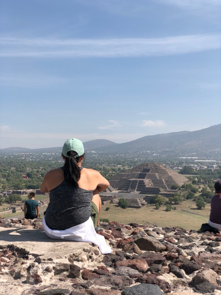 This is my favorite photo from today from the top of the Pyramid of the Sun (216 feet high)… I think you can tell how massive the space is and how small one can feel there.