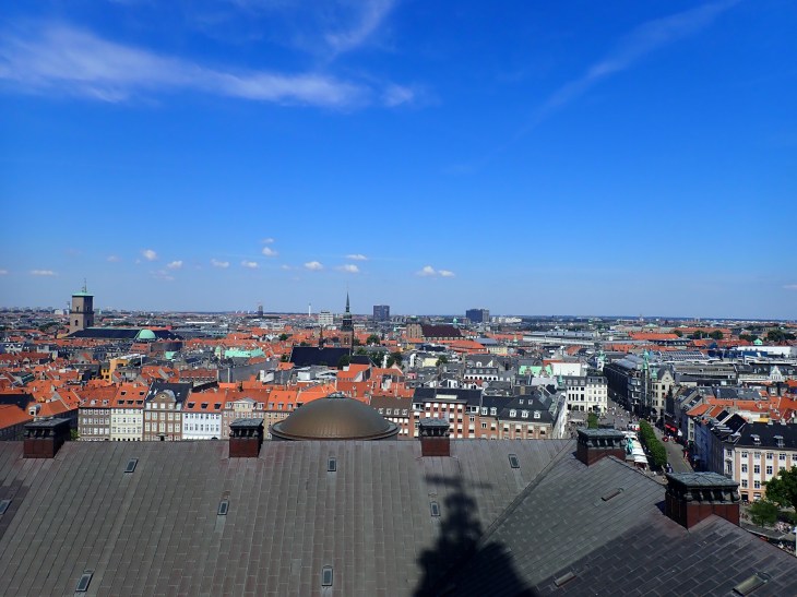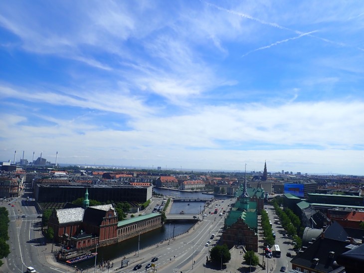 After the canal tour, I was close to the parliament building. Or a palace. It’s all confusing as the walking tour guide called it a parliament building but the signs all said Christiansborg Palace. Either way, there was a 30 minute wait in a queue to go up to the Tower (there I go dropping European terms like I live here or something). But the views from there were to die for – and you can even see Sweden which I thought was an added bonus. I couldn’t decide which picture came out better so I’m putting all 4 sides of the tower in. You be the judge!