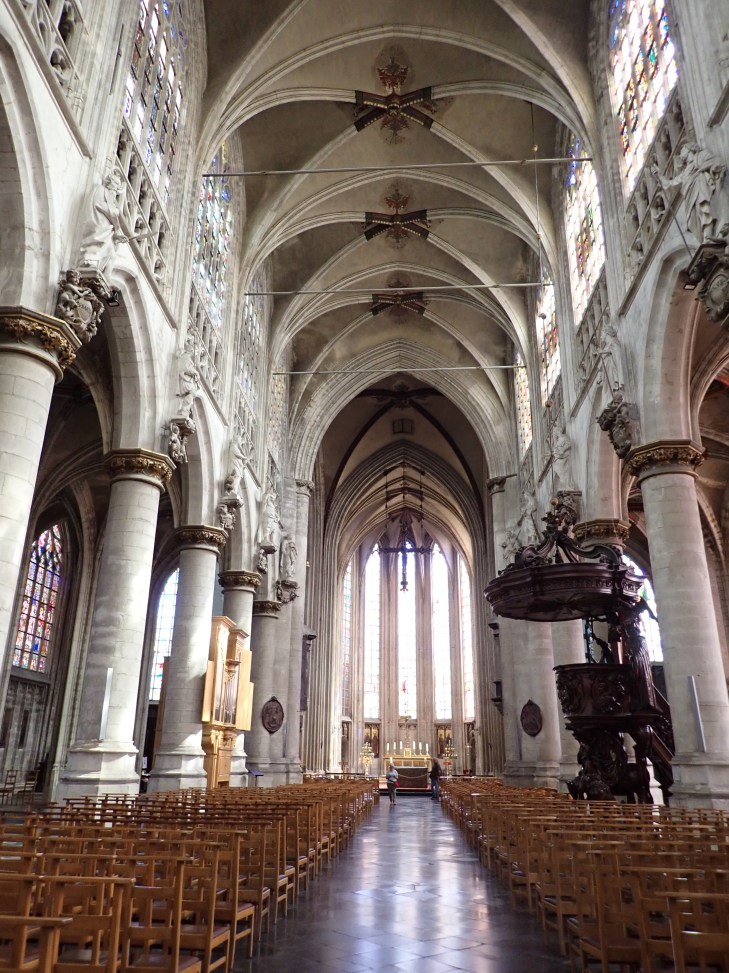 Since I did absolutely NOTHING yesterday, I don’t even know what I did besides eat mussels, I thought today I should make an attempt to see something else besides the Grand Place (for the 6th time) or the Pissing Mannequin again [side note: he still wasn’t wearing clothes and I can only chuckle that maybe it’s too hot outside for even a statue to wear clothing. Wish I could do the same ;)] I forced myself to go to Brussels’ version of Norte Dame.