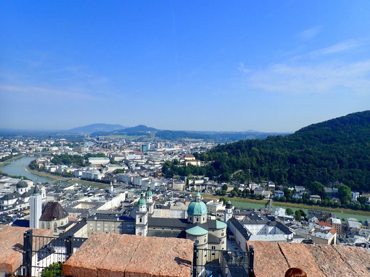 Today I decided I would navigate with the paper map I got yesterday and through my own intuition. I’m happy to report that I hardly used the map! If you know me at all, I’m terrible with directions and need to map everything. But today, I just wandered, knowing I had to climb up some stairs and deciphered the diagrams on signs to find Festung Hohensalzburg. It’s a really cool fortress that you must hike to get up to (or cheat and take the funicular but where’s the fun in that?). The entrance fee was 9.40 euros which included an audio guide and free ride (one way) on the funicular. The views of Salzburg are amazing from the top: