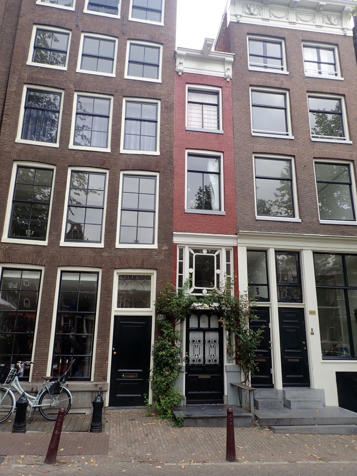 Halfway through the tour, we got a break and I checked for tickets (still not available). I put a little request out to the Universe that I really wanted to see this museum – multiple people have told me how interesting it is to see where they hid. Fine, fine. I’ll keep trying. By the way, this red house in the picture below is one of the smallest houses in Amsterdam. Imagine being that guy who is taller than the width of his house. Dutch people are tall. And brutally honest. And a little hard to read. Hope I don’t offend any Dutch readers I may have.