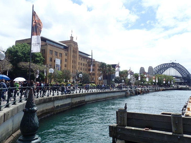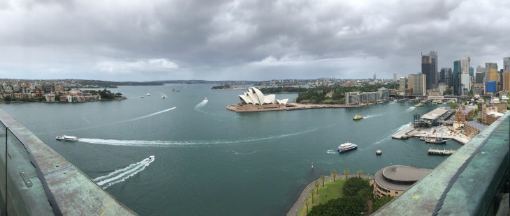 After the tour, Prudence and I decided to hang out for a bit and walk to the Harbor Bridge. We decided not to do the bridge walk because it was ~$250 USD. I don’t know about you, but paying to climb somewhere high during windy days just didn’t feel safe or a good way to spend money. She has the same mentality as I do about spending money, so instead, we paid 15 AUS dollars to climb 200 steps at Pylon Lookout and definitely got “our $10.61USD worth” of views. Direct quote from Prudence. She cracks me up! Here’s a panorama from Pylon Lookout (and yes dude who walked into the right hand side of my pic, I cropped you out).