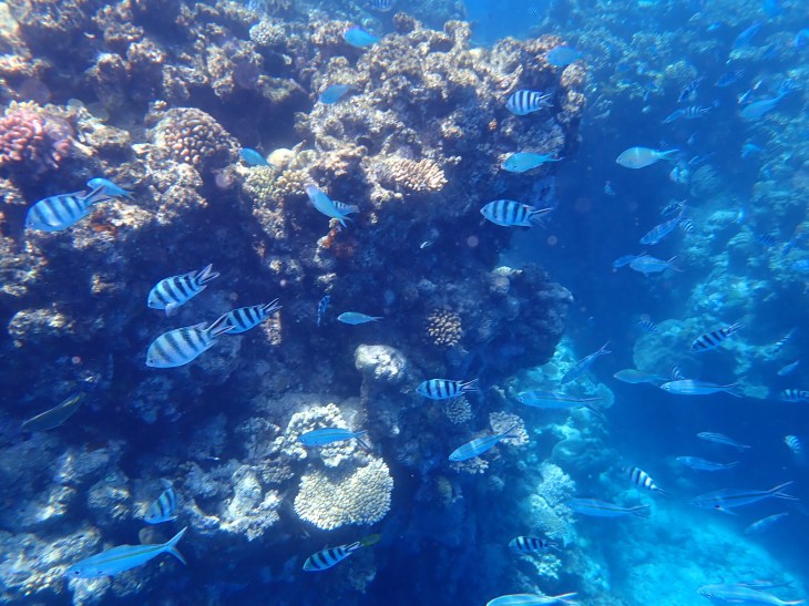 We set sail at 8am and it took about 2 hours to get to the first part of the reef. I think they called it “Little Tracy.” After a quick re-introduction to snorkeling, we were allowed to get into the water when the Skipper yelled, “pool’s open!” I have never seen such pretty colors underwater before. Just absolutely stunning and I’m glad I didn’t do the diving option – side note, I don’t think you’re allowed to do it if you’re on thyroid medication and even snorkeling had me a little confused because I had to breathe out of my mouth but my brain kept telling me I was underwater. I didn’t stay too long in the water as I started getting cold and tired of swimming that long. Also, there was a second spot we were heading to after lunch and I wanted to save my energy.