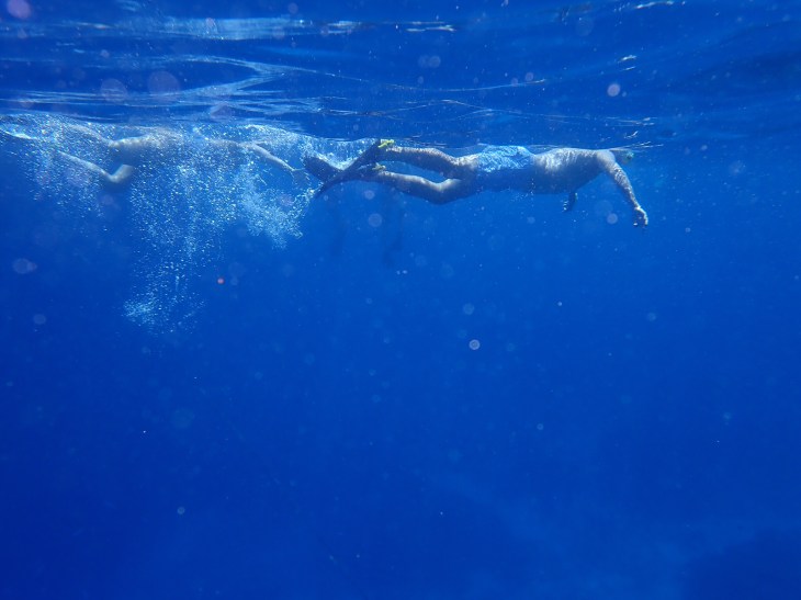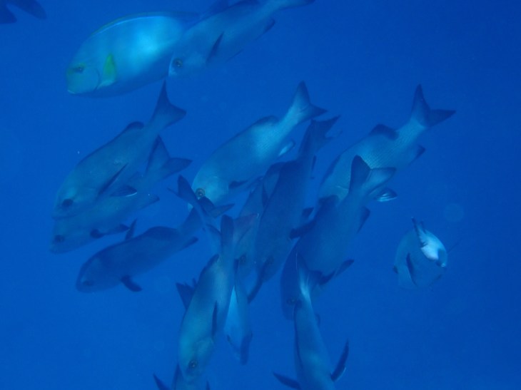 After we came on board, there was a buffet lunch that was pretty impressive. That alone justified the high cost of the tour in this girl’s always-hungry opinion. After lunch, Skipper yelled “pool’s open” again and we were off into “Three Sisters.” It was here that I saw a reef shark! Yes, I saw a shark. I didn’t get to see a turtle or “Nemo” fish and the water was murky in that part of the water. I did however, capture this neon green thing that I have no clue what it was but this is completely unedited (3rd picture). I also included a selfie underwater because why not?!