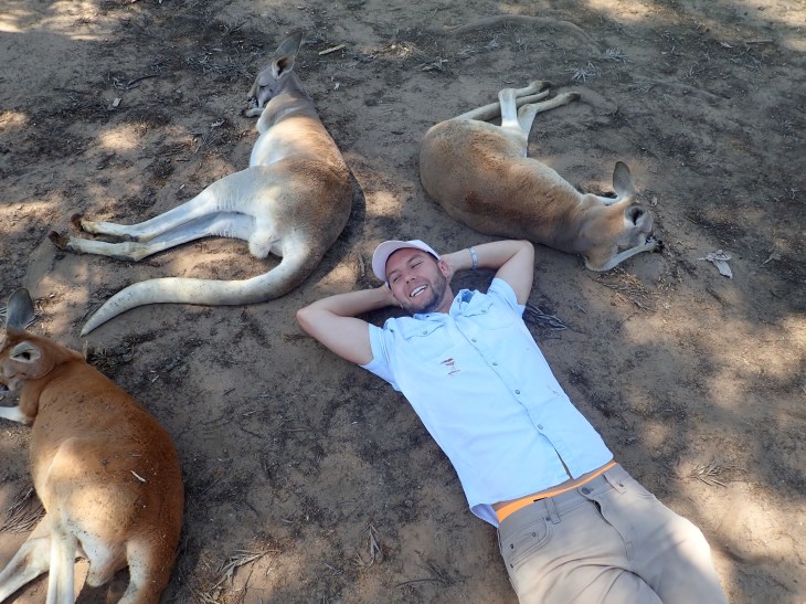 The guys had fun posing with the kangaroos but I didn’t want to get dirty. That just means extra laundry to do in New Zealand tomorrow.