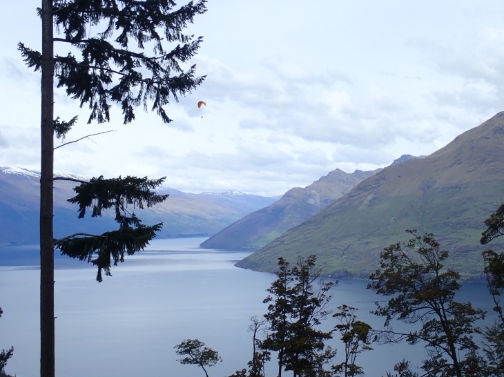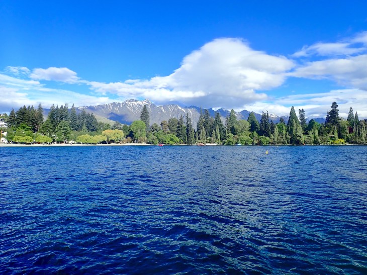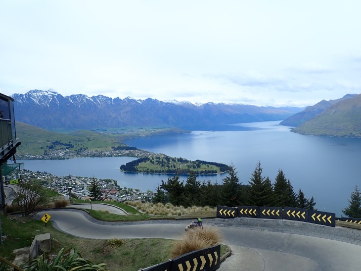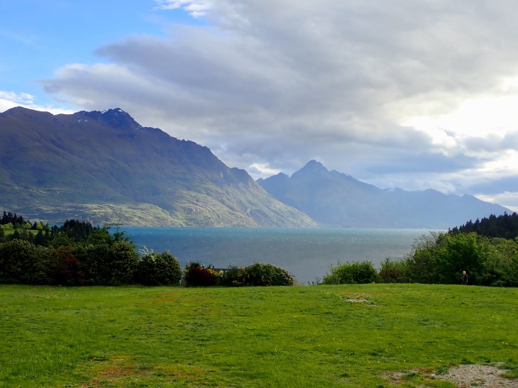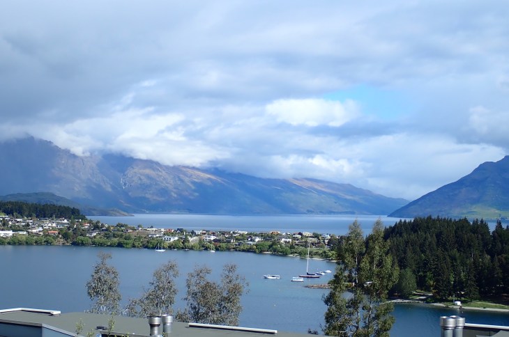 I have arrived in Queenstown, New Zealand. That makes Country #27 and New Zealanders (aka, Kiwis) are all super nice. I think they’re even nicer than Australians where I felt out of place A LOT of the time. However, in New Zealand, either I’m immune to it or the people are just cooler. I arrived on Wednesday to a studio apartment at The B&B on the Hill. And it’s certainly on a hill… you have to walk 20 minutes down into town and the walk back up is a definite glute workout. But the views of the lake on the walk are stunning. This one is from “my” backyard.