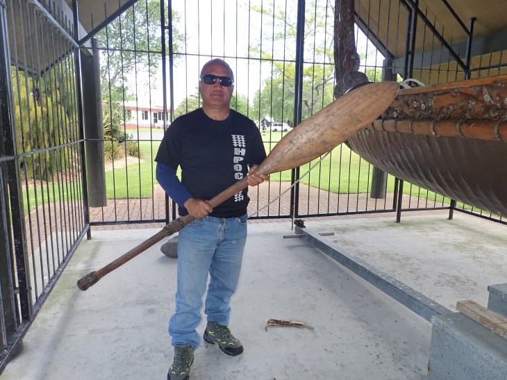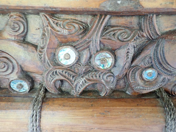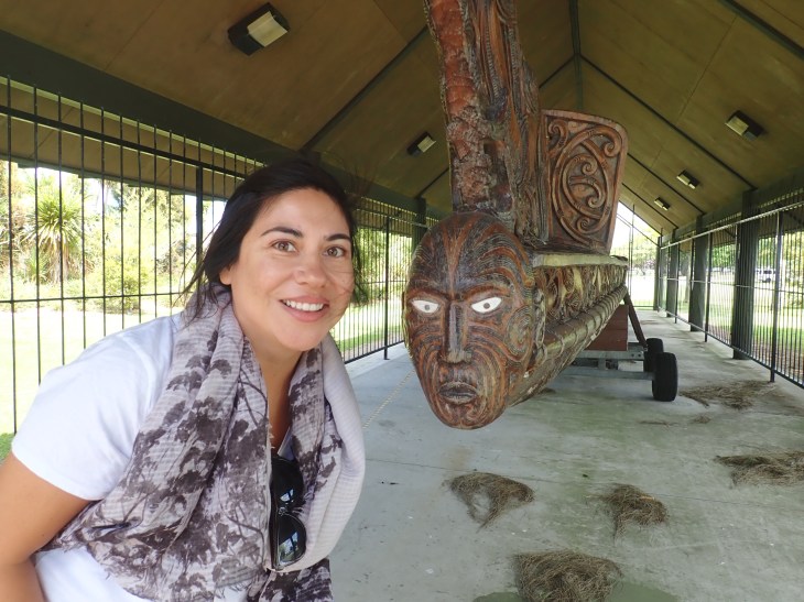 Then we drive to a park where a traditional waka (I think that’s the term for a canoe) is kept. And I’m super lucky because Pererika has keys to unlock the door as he is one of The Guardians. So we pop inside for a closer look!