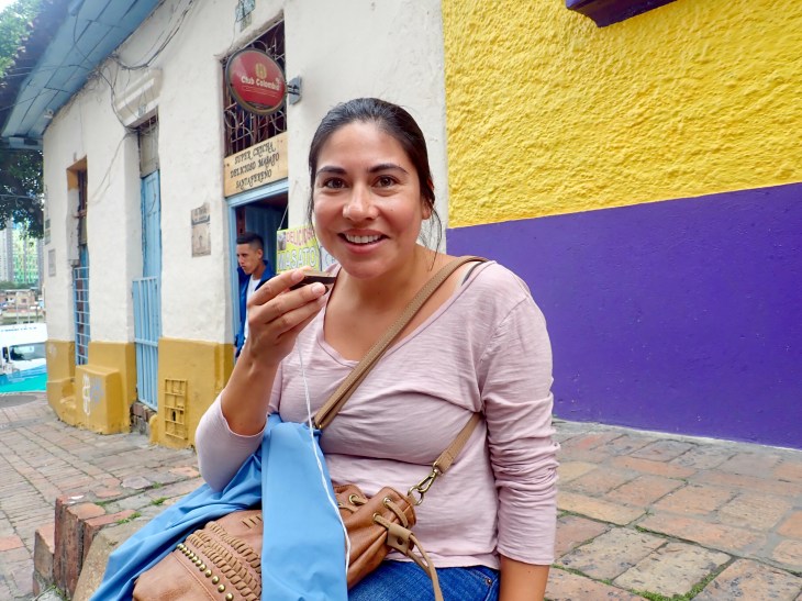Then, we walked to the area known as La Candelaria which is where my hotel is located. Along the way, we stopped at a hostel for anyone to use the bathroom and we got to taste a sample of chicha, the most popular nationalistic drink of Colombia! Here’s me before I try it: