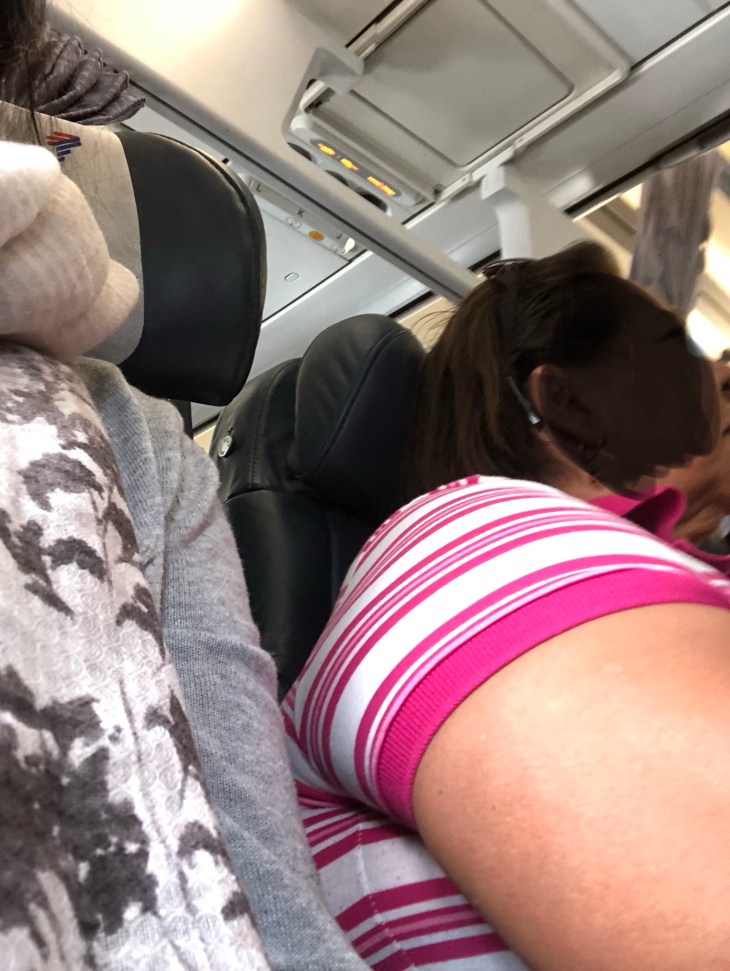 I sit at the gate area and I see a rather large woman sitting a few rows ahead of me at the gate. Remember how I think the Universe is f&*king with me lately?!!.. well now I have proof. As we boarded the plane, I thought to myself, I feel bad for whoever sits next to her. She’s obviously going to need a lot of room. And listen, before you judge me for judging her, I’m not commenting purely on her weight (it spoke volumes on it’s own) but her behavior made her unbearable and down right rude. Guess who was sitting next to her?? Yep, I won the seat lottery as this is the first time I’ve ever had to sit next to someone who required a seat belt extender because she needed “just a little bit more.” Her words, not mine. And when I pointed out that I was in the window seat since she was in the middle seat, she made no movement to get up and I had to climb over her. I hope I hit her in the face with my backpack because I get that it’s tough for you to stand up lady but I’m not down for airplane gymnastics. And the kicker? The absolute kicker…she was traveling with 3 other people and they all sat in middle seats in 4 different rows, talking back and forth amongst themselves from different rows. And she leaned over every time she wanted to talk to her grandson(?) in front of her so that my space was invaded constantly by her large arm. And this may be mean but I had to get a picture. I blacked out her face in case I know any Colombians that I didn’t know I know and this is their family. In which case, I’m sorry you came from that. Trust me, it gets 1,000 times worse.