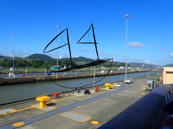 Today is my last full day in Panama and I thought I should see the Panama Canal. I didn’t book a tour to go through the canal, just took an Uber to the visitor center. Multiple reports I had read said to get there before 10am so I timed it to be there at 9am. And I just missed a boat going through at 8am. It takes about an hour for each vessel to go through the locks and there’s a time during the day (from 10a-2p) where no boats go through. And I didn’t want to wait 4 hours at the visitor center. So I drew a boat on this picture I took. That will have to do.