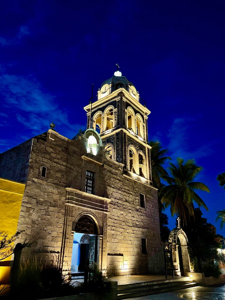 Afterwards, we took a group siesta in the air-conditioned room – Loreto is hot and humid (per the weather app, it’s currently 88 degrees with 45% humidity). When we woke up, we walked around the little town to check out our surroundings and book a 2-day land and sea tour. Here are some evening and night time pictures for your viewing pleasure.