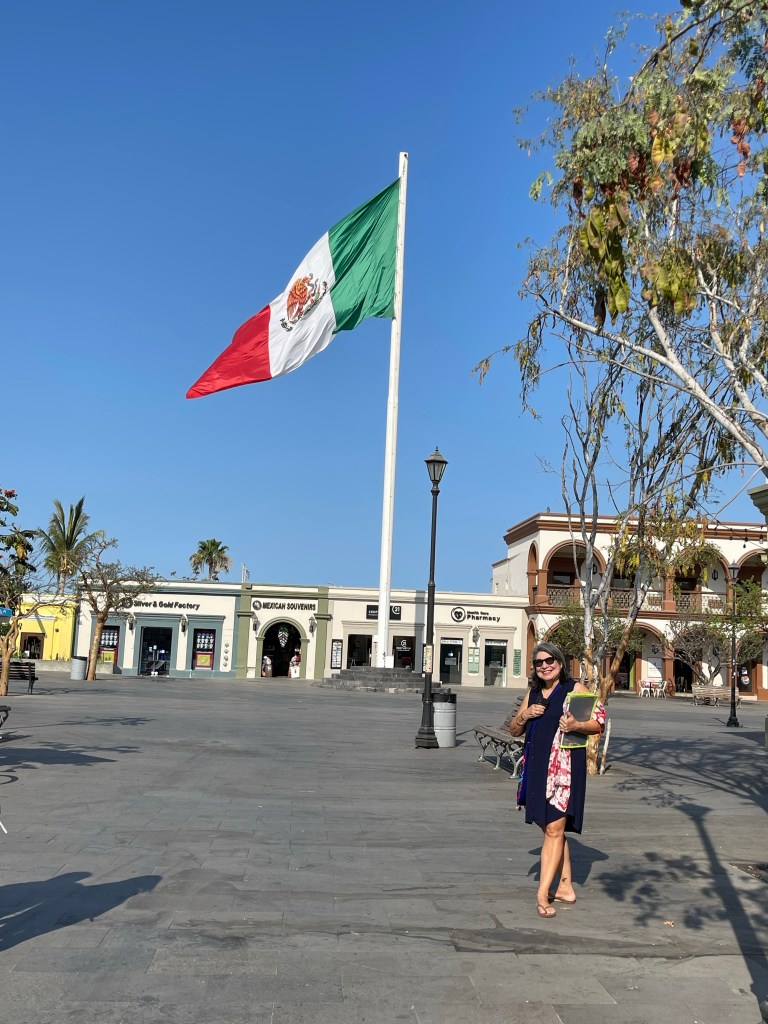 So naturally, I needed to make sure and mom needed to get some sketching done. Donning our best “beer-drinking” clothes (loose fitting dresses and flats), off to the downtown Plaza we went. Man, I love Mexico. And when I see the gigantic flag, I get even more excited to be here.