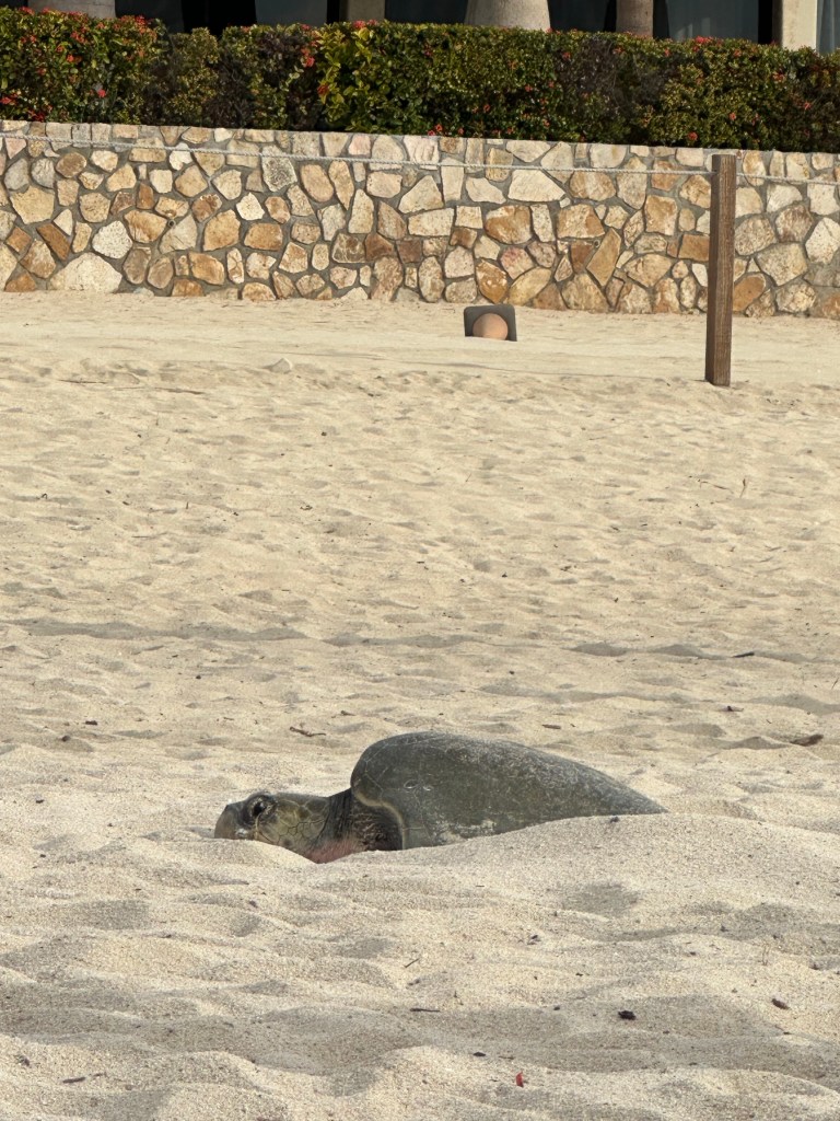- Turtles still come up to the beach to lay their eggs. I saw this lady the other morning.