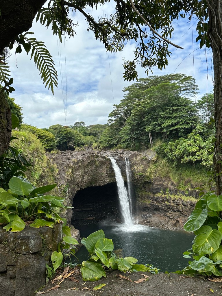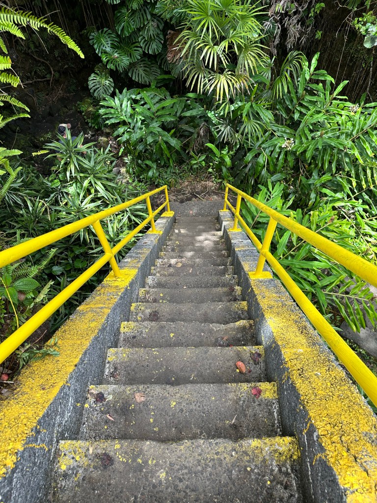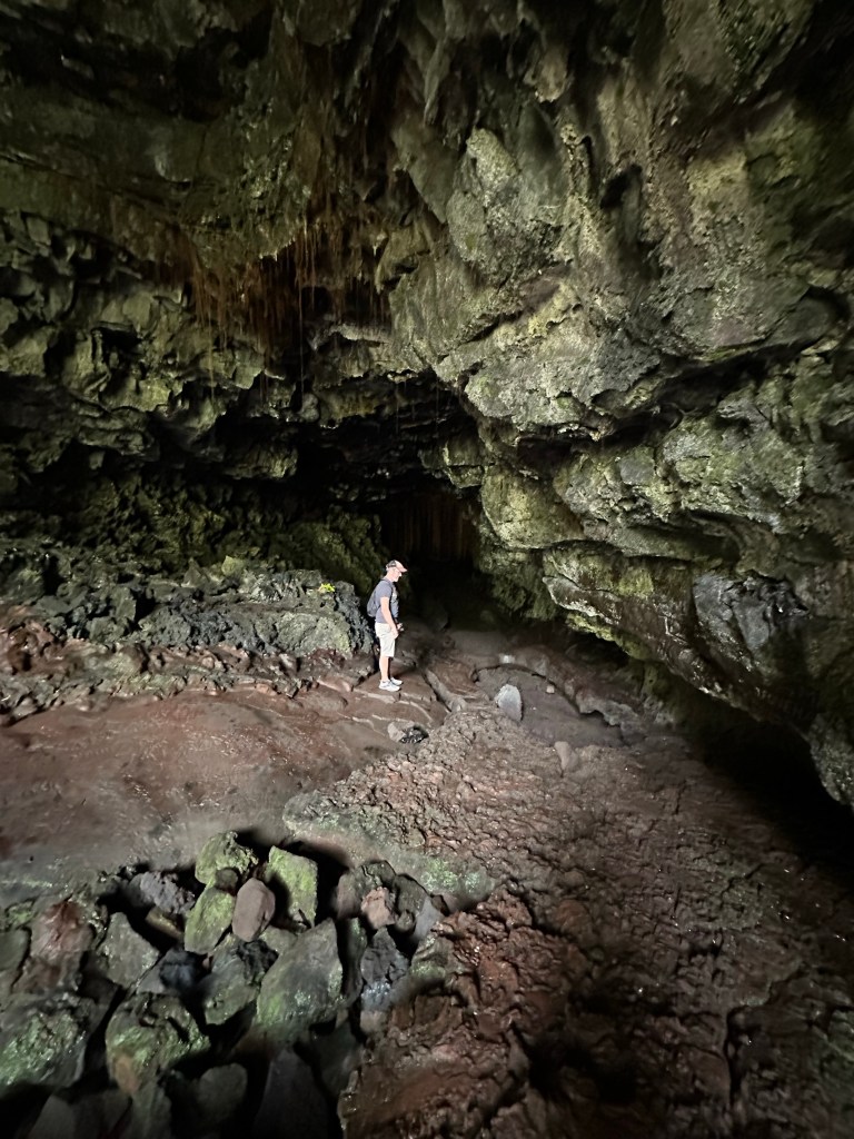 On Wednesday, we decided to drive the 2 hours to check out some waterfalls and a lava tube. Don’t worry, it’s cooled-down lava that has formed a tunnel and you can walk through them. It must be off-season or there’s no one else on this island because we’ve gotten easy parking everywhere we’ve gone. The lack of public restrooms (even for paying customers) is still an issue – I have used too many port-a-potties on this trip, well, more than I’ve had to use in some other countries!