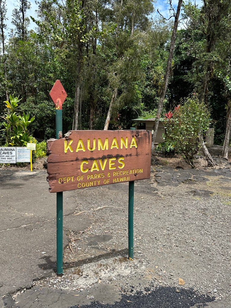Driving some more, we stopped at the Kaumana Caves, which is where the lava tubes are. There are two different caves, the right-side and left-side. The right-side is easier to navigate but not by much. In fact, both caves are very dark and slippery. I went about two steps in and David went much further. He’s definitely the more adventurous explorer than I am.