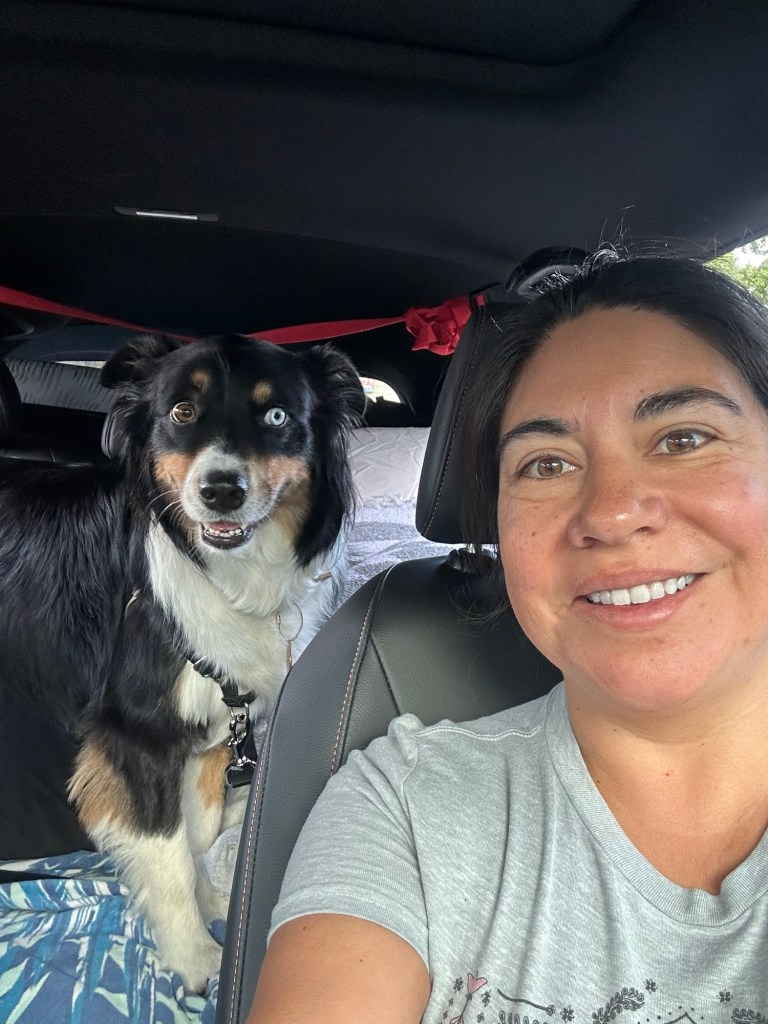 One very illegal u-turn through a sandy embankment (I wasn’t driving!) and we headed south on the 5 to take back roads around the closure. 3 hours after our original arrival time, we reached stop #1, drum roll please, Fresno. I know, I know. Fresno. But it was a convenient stop for the night as we got used to being on the road. I’m really proud of Blue. He is stepping out of his comfort zone and getting used to being off-leash, safely. David & I are both working on disconnecting from work and taking time to enjoy all of the memories and moments we are making. Even if roughing it with only 1 bathroom.