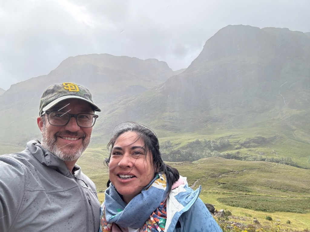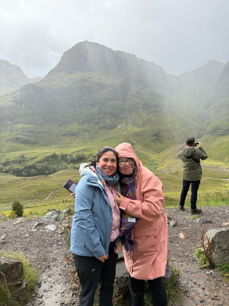 The next day started off too early for vacation (waking up at 6:45am) but we needed to get a head start on a day trip to the Scottish Western Highlands. I had no idea what my mom was talking about when she asked our tour guides Gregor and Brian if we’d be seeing a hairy coo on the drive. Get your mind out of the gutter people, it’s a highland cow that has long hairy fur and horns. We learned from the guides that it means hairy bum in Portuguese. That’s something that certainly could easily get lost in translation. We took a photo with Gregor (who I kept wanting to call Conor) and our amazingly adept bus driver, Brian.