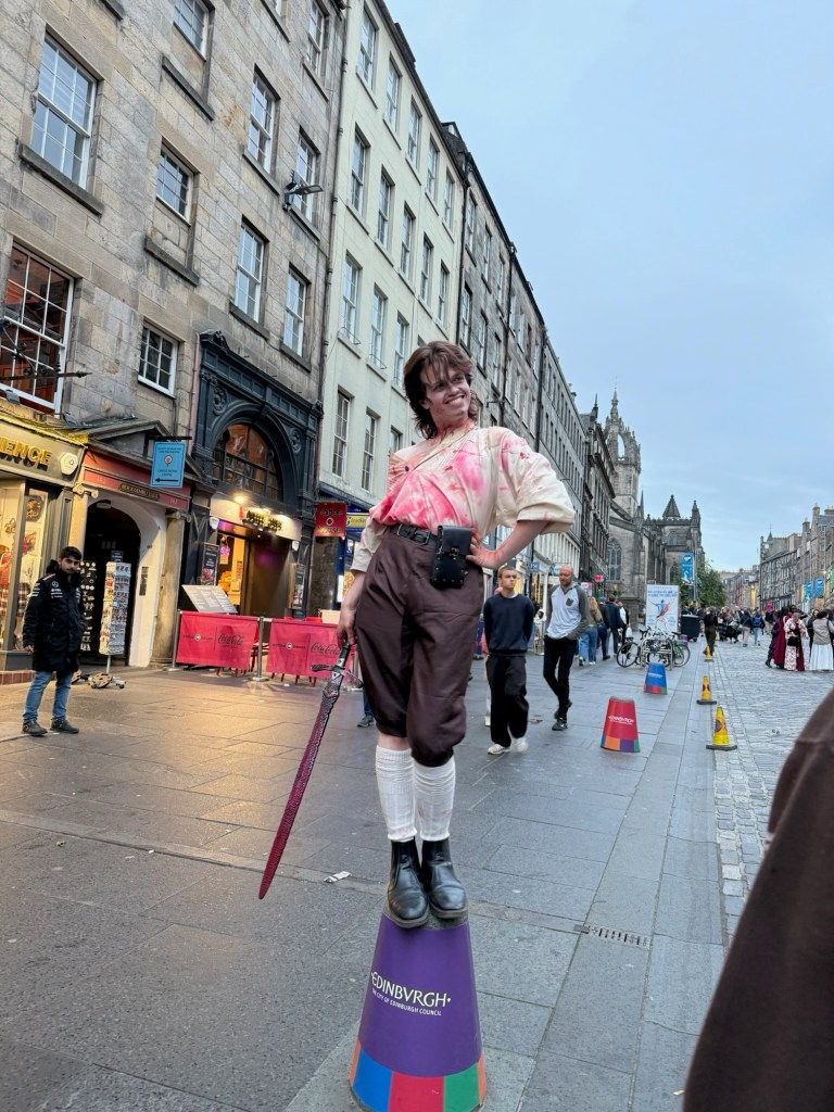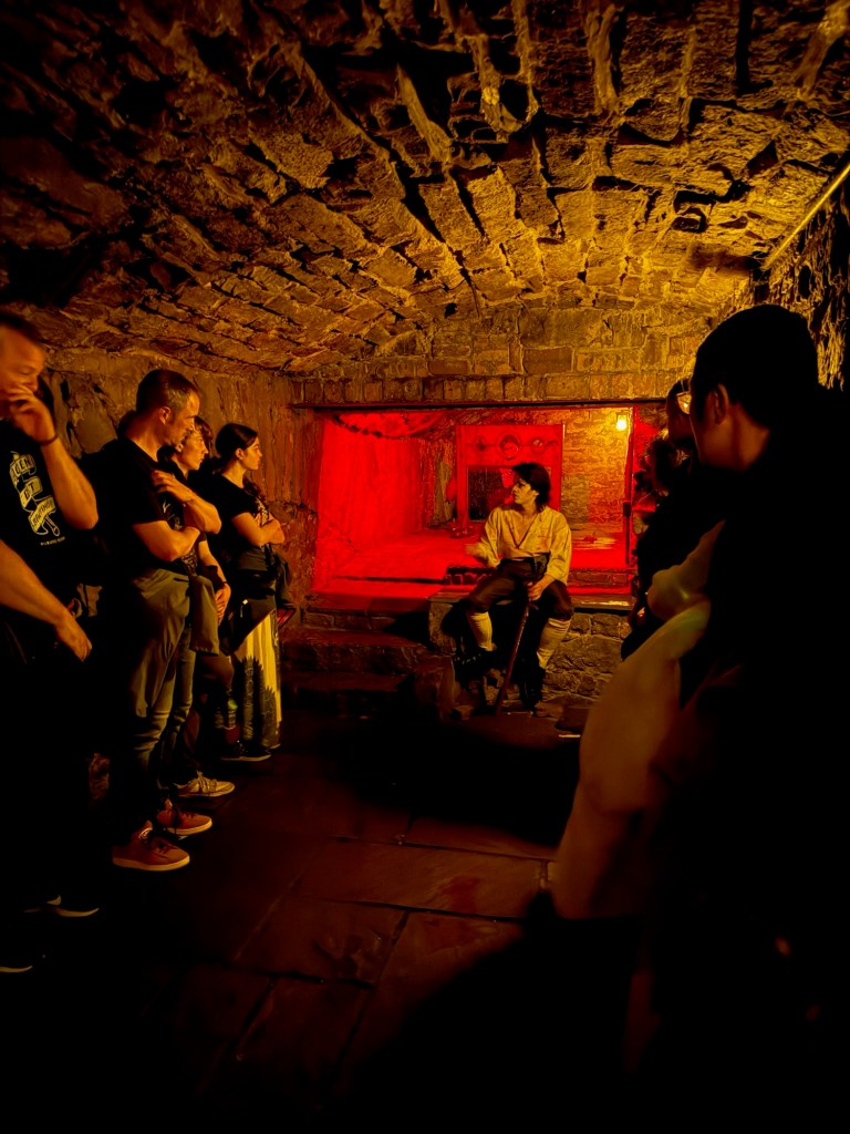We met the tour guide dressed up as murder victim David Rossini, in bloody period garb and wielding both a crude attitude and fake (oh I really hope so) bloody sword. He will be referred to as Coorse David for the rest of this post to differentiate him from My David. Coorse means crass in Gaelic. The crassness bordered on inappropriate and I’m not sure we signed up to be made fun of or called “f*$&ing stupid.” Nor did we want to hear about his sexcapades last weekend. We start following him around Edinburgh and when passerby’s stopped to listen, out of curiousity, he told them to “f*%# off.” Guess out of work actors need work too. The tour was one of the worst ones I’ve been on because we couldn’t hear him as he was walking and talking. We all trauma bonded together because instead of us being engaged and responding to his questions, we quickly learned it was best to keep quiet and hope the tour was over soon.