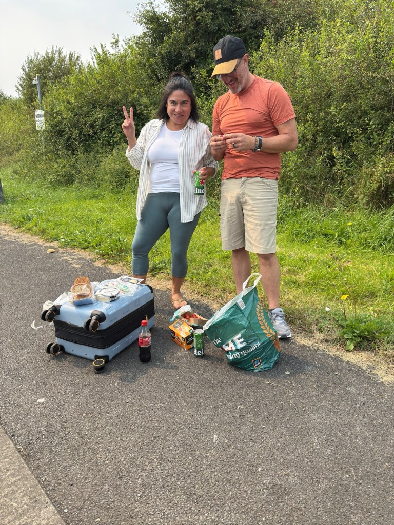 Lunch on the road involved a rest stop along the freeway. Here’s our Suitcase Charcuterie meal, including canned beer.